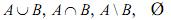 – відповідно об'єднання, перетин, різниця множин і