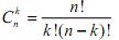 Кількість комбінацій з п елементів по k обчислюють за формулою: