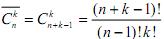 Кількість комбінацій з повтореннями з п елементів по k обчислюють за