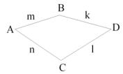 Скількома способами можна потрапити з п.А до п.D, якщо з А до В веде m доріг, з В до D – k доріг, з А до С – n доріг і з С до D – l доріг?