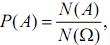 Класичне означення ймовірності формулюють для подій, які є підмножинами множини Ω. Якщо A = {ωi1,ωi2,...,ωiN(A)}, дe