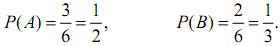 Ω = {ω1,ω2,..,ω6}, B = {ω3,ω6}, N(A)=3, N(B)=2,
