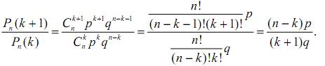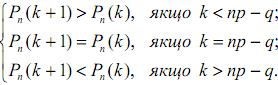 Отже, Pn(k+1)>Pn(k), якщo (n-k)p>(k+1)q, тобто np-q>k(p+q)=k. Тому