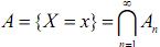 і позначимо An={xn≤X≤x0}. Тоді послідовність подій A1⊃A2⊃...⊃An ⊃... − спадна, причому . За аксіомою неперервності