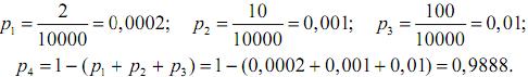 | P=pk | 0,0002 | 0,001 | 0,01 | 0,9888 |