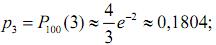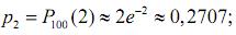 Розв'язання. У даному випадку проводиться n=100 випробувань за схемою Бернуллі, і випадкова величина Х може набувати значень x0=0, x1=1, x2=2, x3=3, x4=4, ..., x100=100. Імовірність події А – надходження повідомлення від одного абонента є мала, а число n=100 – велике і λ=100·0,02=2, тому відповідні ймовірності обчислюємо за формулою (1):