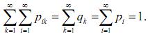 pi=P{X=xi}, i=1,2,...; qk=P{Y=yk}, k=1,2,... .