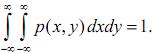 Використовуючи, що F(+∞, +∞)=1, з (6) отримуємо основну властивість щільності розподілу випадкового вектора (X, Y):