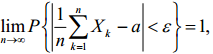 тобто середнє арифметичне випадкових величин збігається за ймовірністю до математичного сподівання а.