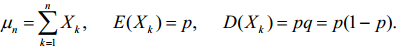 Надамо співвідношенню (7) іншу форму. Для цього позначимо через Xk кількість появ події А у випробуванні за номером k, тоді випадкові величини X1,X2,...,Xn,... незалежні,
