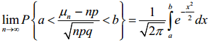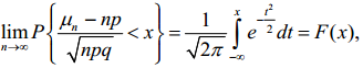 Нехай µn - кількість появ події А в n незалежних випробуваннях, в кожному з яких P(A) = p. Згідно з інтегральною теоремою Муавра-Лапласа