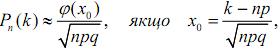 Локальна формула Муавра-Лапласа. Нехай імовірність успіху в кожному з п незалежних випробувань за схемою Бернуллі рівна p, 0